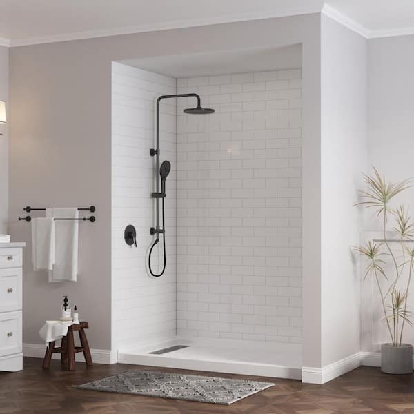 60 in. x 36 in. Composite Single Threshold Alcove Shower Pan Base with Stainless Steel Cover and Left Drain in White