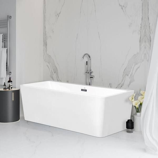 63 in. Acrylic Flatbottom Non-whirlpool Bathtub in White