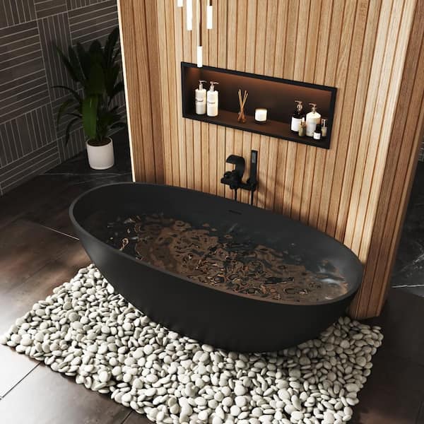 65 in. Soaking Composite Artificial Stone Solid Surface Flatbottom Non-Whirlpool Bathtub in Black