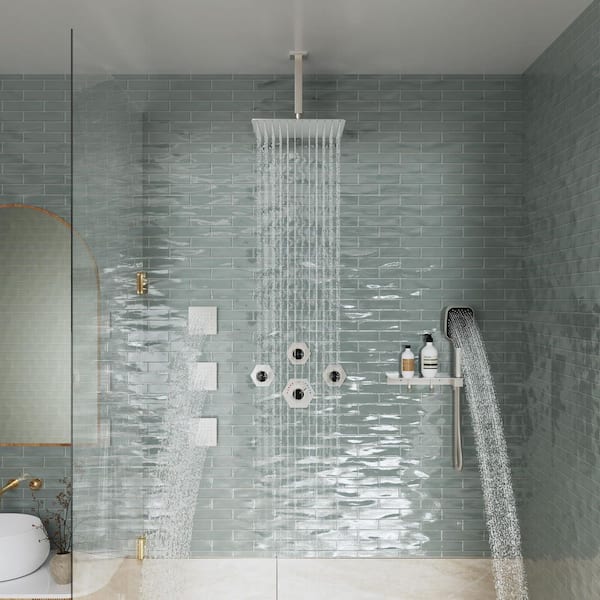 7-Spray 12 in. Wall Mount Dual Shower Heads and Handheld Shower Head with 2.5 GPM 3-Jet in Brushed Nickel