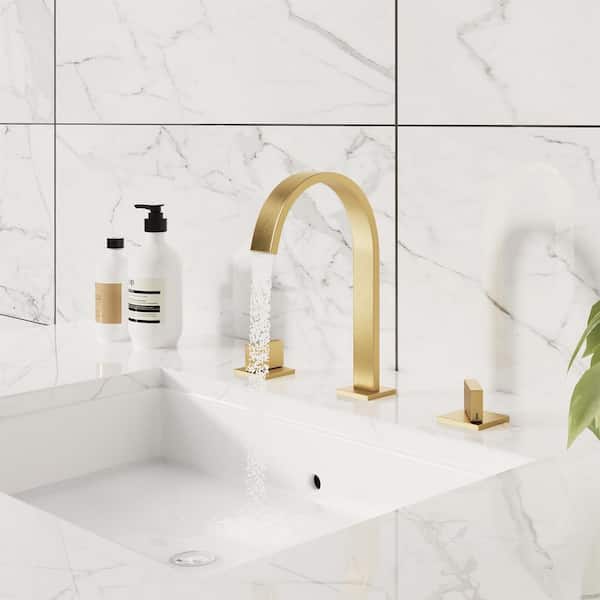 8 in. Widespread Double Handle Bathroom Sink Faucet in Spot Resist Brushed Gold