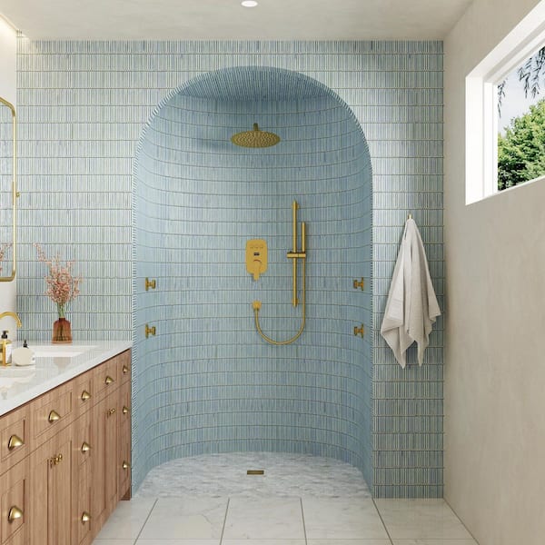 Digital Display 3-Function Single Handle 3-Spray Dual Shower Faucet 2.5 GPM with Body Spray in Brushed Gold