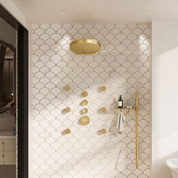 Dual Showers 4-Spray Patterns 12.6 in. Round Wall Mounted Fixed and Handheld Shower Head 1.8 GPM in Brushed Gold