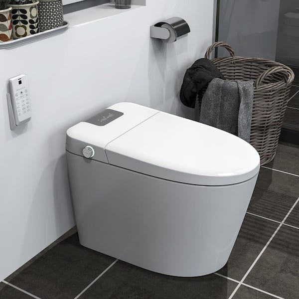 Elongated Ceramic Smart Bidet Toilet 1.28 GPF in White with LED Display, Energy Saving Mode, Warm Air Dryer, Pre-wet