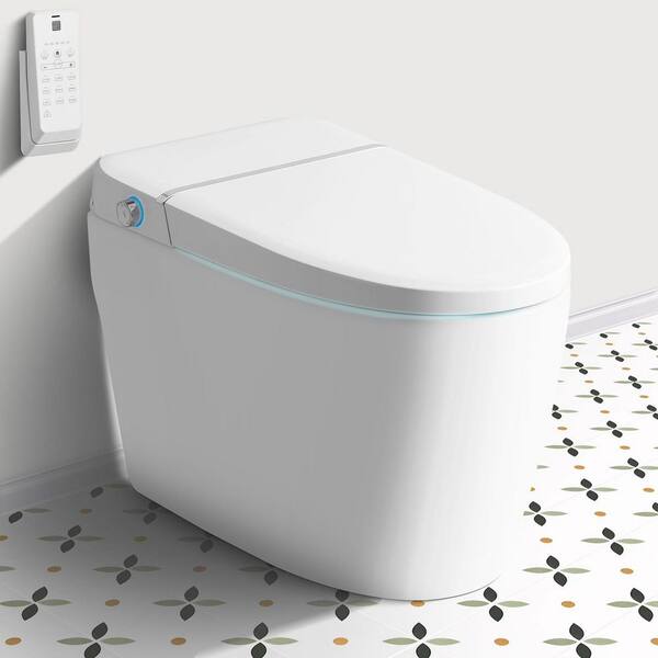Elongated Electric Smart Bidet Toilet 1.28 GPF in White with Off-seat/Foot Sensor Flush, Warm Air Dry, Multi Wash Mode