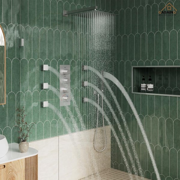 Luxury 3-Spray 12 in. 2.5 GPM Wall Mount Dual Shower Head and Handheld Shower Head with 6 Body Jets in Brushed Nickel