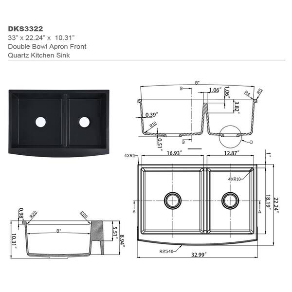 Matte Black Quartz 33 in. Double Bowl Farmhouse Apron Kitchen Sink