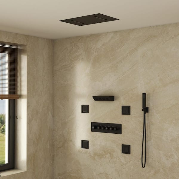Single-Handle 5-Spray Rectangular Shower Faucet 2.5 GPM with Body Spray in. Matte Black, Valve Included