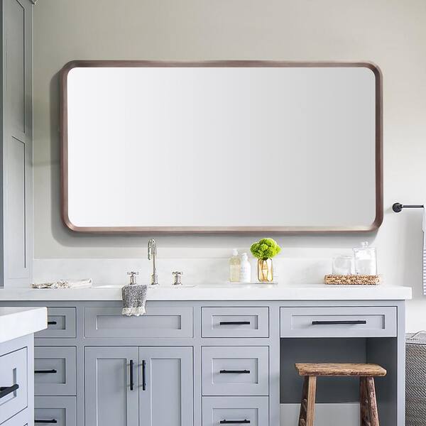 Vela 55 in. W x 29.5 in. H Single Acacia Framed Rectangular Bathroom Vanity Mirror in Chestnut