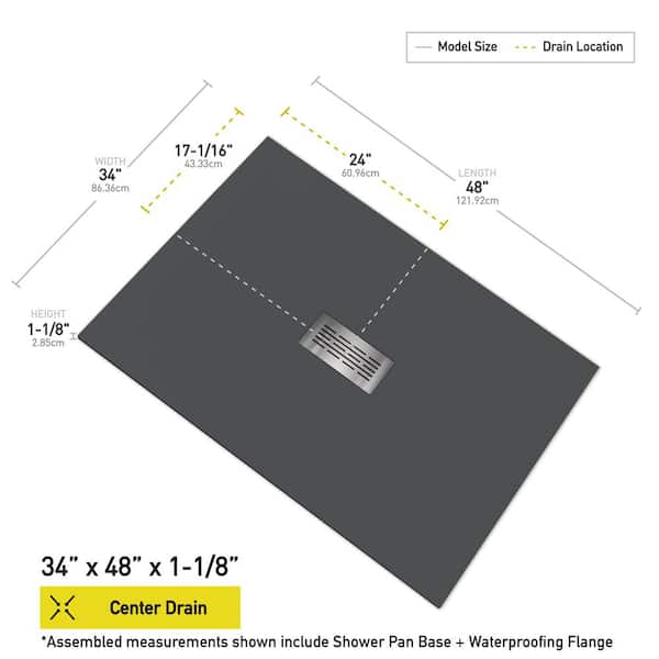 48 in. L x 34 in. W x 1.125 in. H Solid Composite Stone Shower Pan Base with Center Drain in Graphite Sand