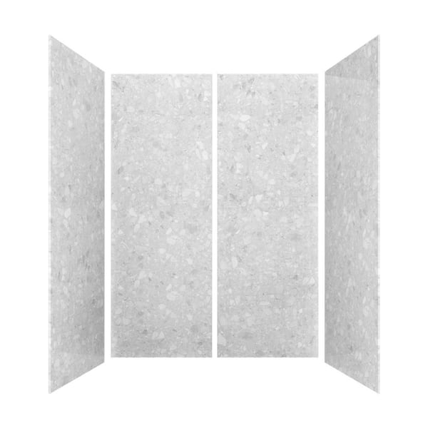 60 in. L x 32 in. W x 84 in. H Glue-Up Alcove Solid Composite Stone 4-Piece Shower Wall Set in Bono Gray