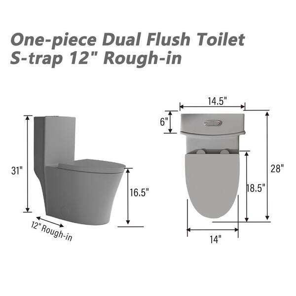 1.1/1.6 GPF Dual Flush Elongated 1-Piece Toilet in Matte Gray with Map 1000g Soft Closing Seat