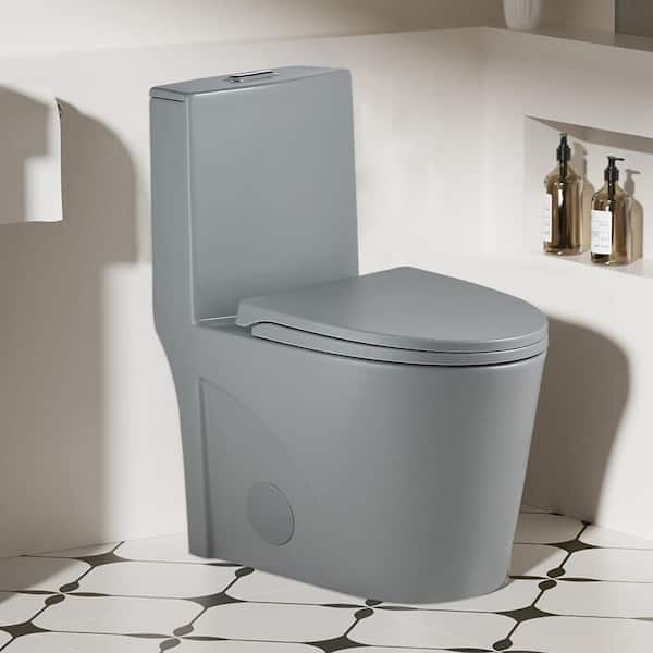 15 5/8 in. 1.1/1.6 GPF Dual Flush 1-Piece Elongated Toilet in Light Grey with Soft-Close Seat