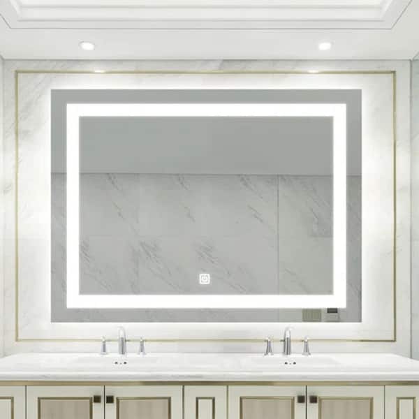 40 in. W x 32 in. H Large Rectangular Frameless Anti-Fog Wall Mounted LED Light Bathroom Vanity Mirror in Silver