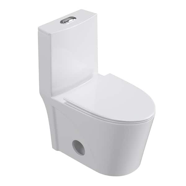 Dual Flush 1.1/1.6 GPF Elongated 1-piece Toilet in Glossy White with Soft Closing Seat Cover