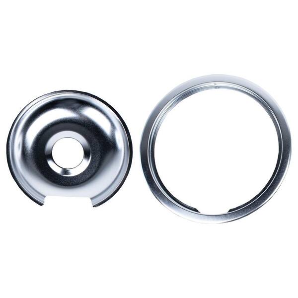 Chrome Style E Hinged 2 Large 8 in. & 2 Small 6 in. Replacement Drip Pan & Rings for Whirlpool, Kenmore & Maytag Ranges