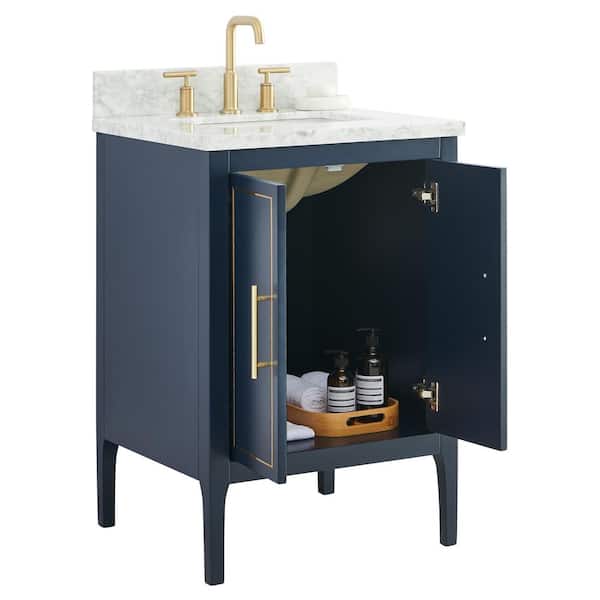 Exeter 24 in. W x 21 in. D x 34 in. H Single Sink Bath Vanity in Navy with Carrara Marble Top and Ceramic Basin