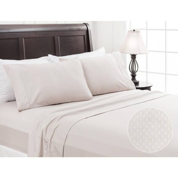 3-Piece Light Tan Solid Color Checkered Embossed Microfiber Bedsheets Set Twin