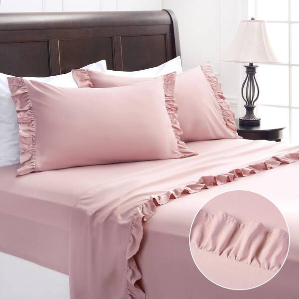 3-Piece Ruffle Chic Mauve Microfiber Bedsheets Set Twin