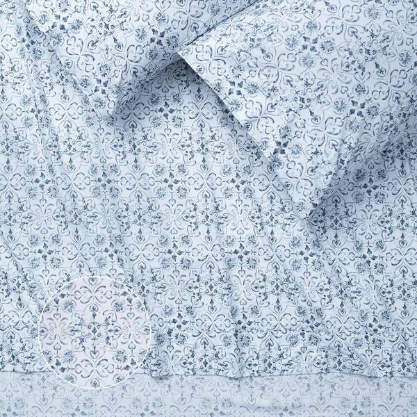 4-Piece Ceramic Blue Pattern Print Microfiber Bedsheets Set, King