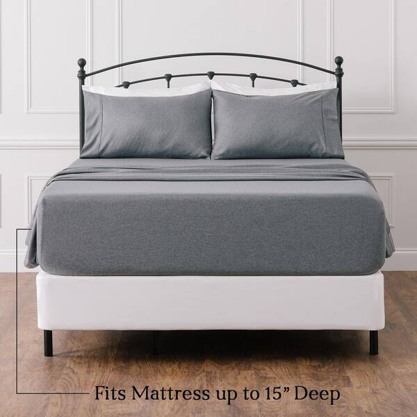 4-Piece Faux Linen Charcoal Gray Polyester Bedsheets Set, King