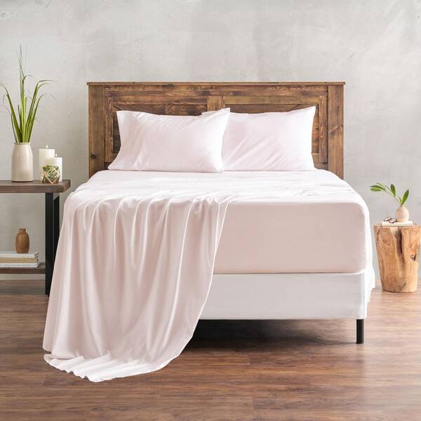 4-Piece Tan Pink Solid Color Embroidered Microfiber Bedsheets Set, King