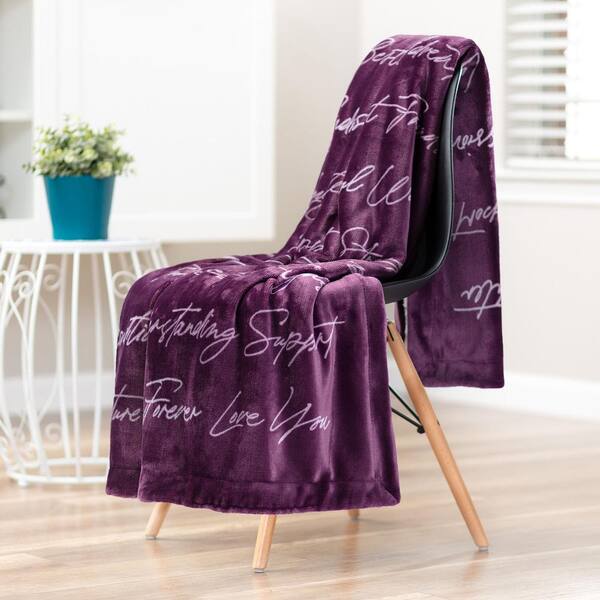 Best Friends Forever Aubergine BFF Polyester Gift Throw Blanket, 50 in. x 65 in.