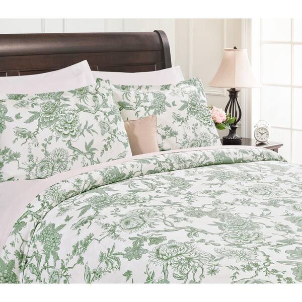 Chanasya 3-Piece Antique Toile Blue Print Microfiber Duvet Cover Set, King