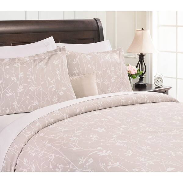 Chanasya 3-Piece Leaf Beige Bramble Print Microfiber Duvet Cover Set, King