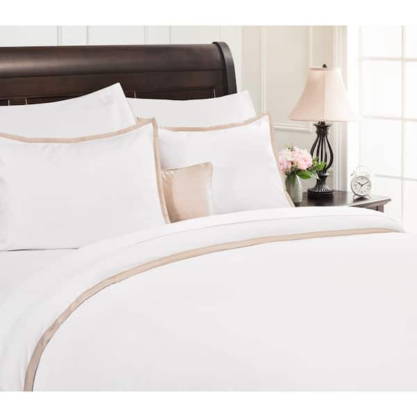 Chanasya 3-Piece Ribbon Embroidered Beige Solid Color Microfiber Duvet Cover Set, King
