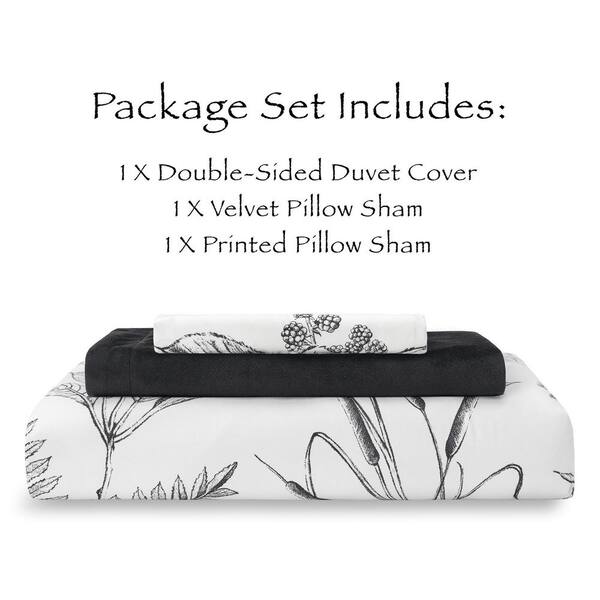 Chanasya 5-Piece Grove Sketch Floral Botanical Print Reversible Microfiber Duvet Cover Set, King