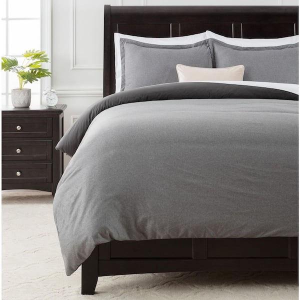 Chanasya Faux Linen Charcoal Reversible Microfiber Duvet Cover Set, King