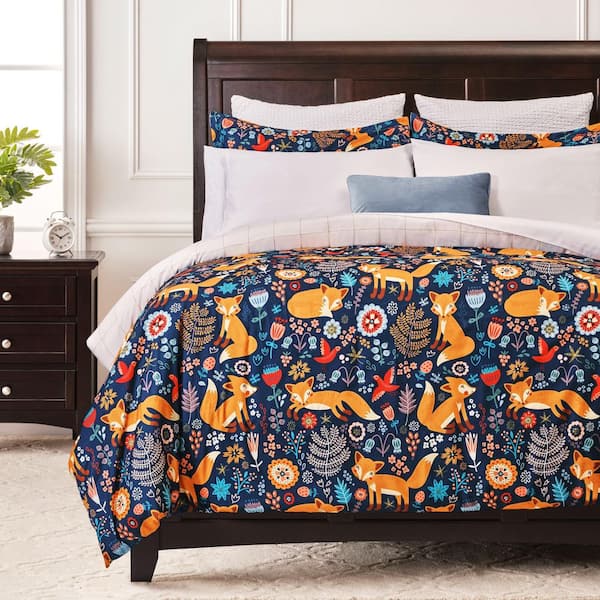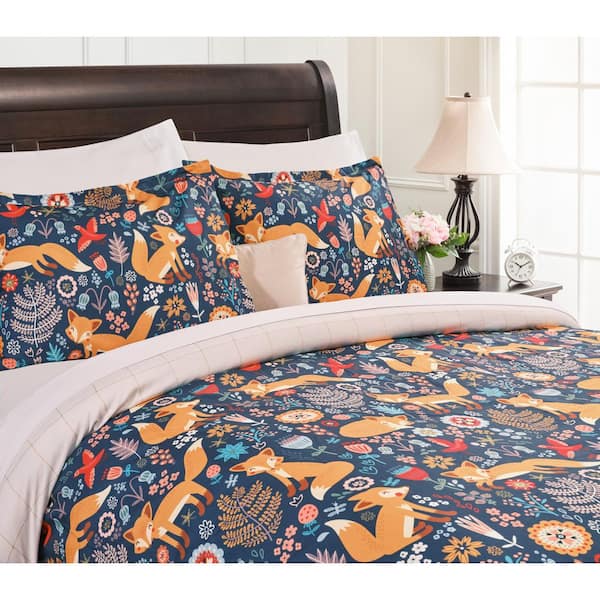 Chanasya Golden Fox Print Reversible Microfiber Duvet Cover Set, Queen