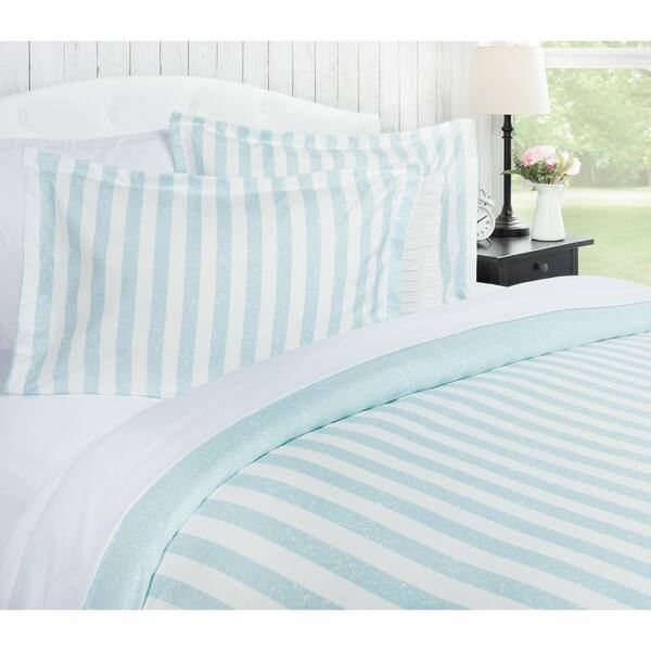 Chanasya Light Blue Textured Stripe Microfiber Reversible Duvet Cover Set, King Size