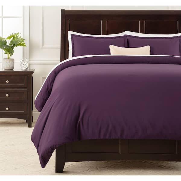 Chanasya Solid Color Aubergine Ultra Soft Bedding Microfiber Duvet Cover Set, Twin