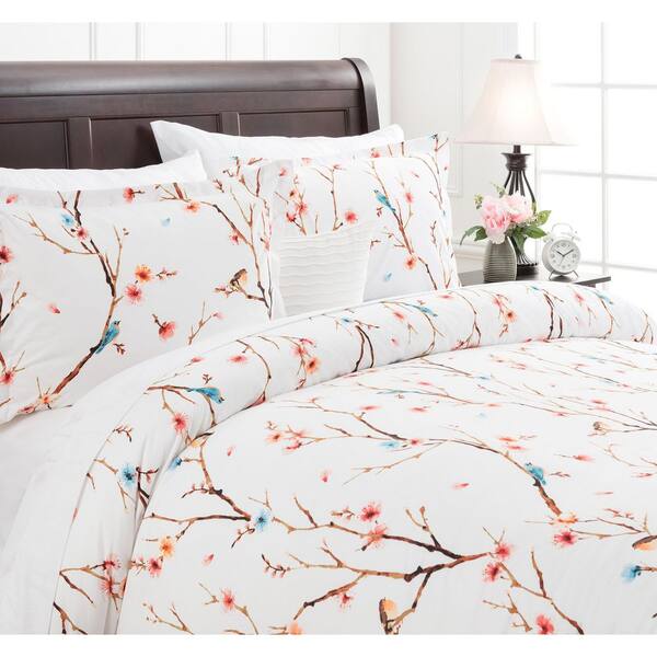Chanasya Spring Sakura Cherry Blossom Print Microfiber Duvet Cover Set, King Size