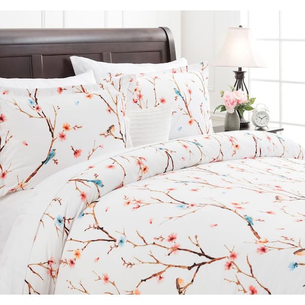 Chanasya Spring Sakura Cherry Blossom Print Microfiber Duvet Cover Set, Queen Size