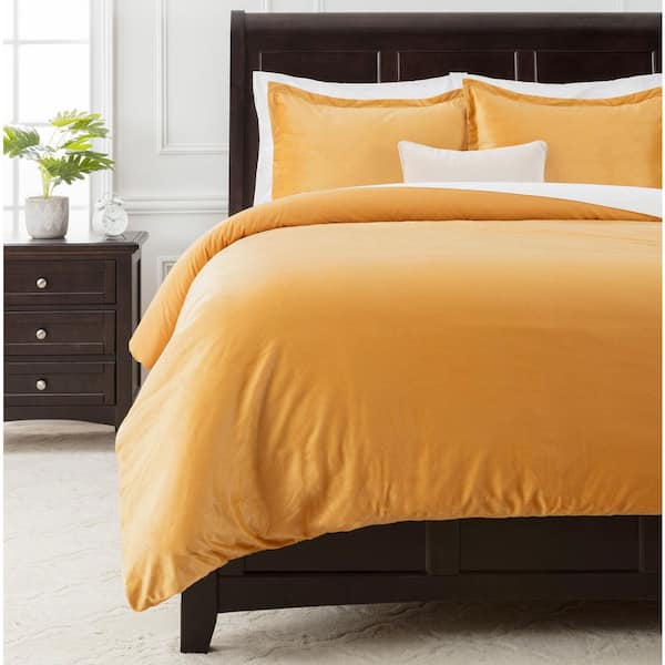 Chanasya Velour Golden Solid Color Velvet Bedding Reversible Microfiber Duvet Cover Set, King