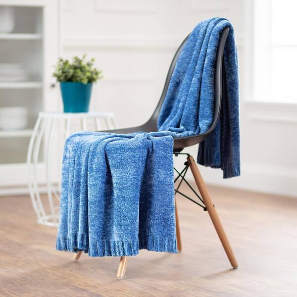 Chenille Blue Shimmery Textured Polyester Knit Throw Blanket, 50 x 65 in.
