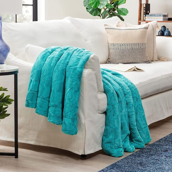 Embossed Sky Teal Fur Polyester Sherpa Shearling Throw Blanket - 50 in. x 65 in.
