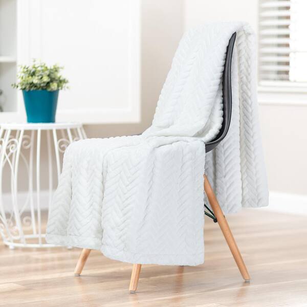 Faux Fur Embossed Off White Textured Polyester Throw Blanket, 50 x 65 in.