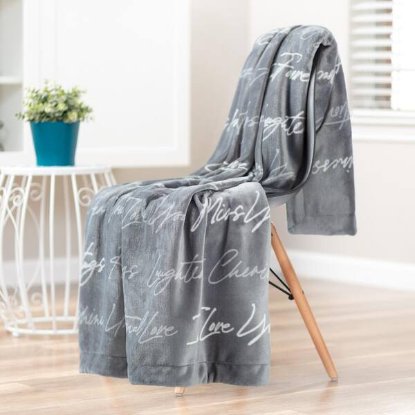 I Love You Gray Polyester Gift Throw Blanket, 50 x 65 in.