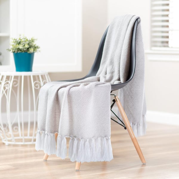 Maze Taupe Knit Acrylic Throw Blanket with Tassels, 50 x 65 in.