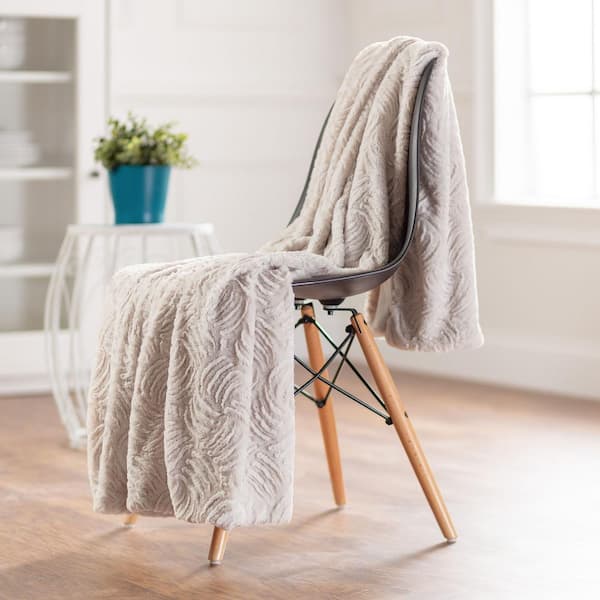 Reversible Soft Textured Sand Faux Fur Velvety Mink Throw Blanket, 50 in. x 65 in.