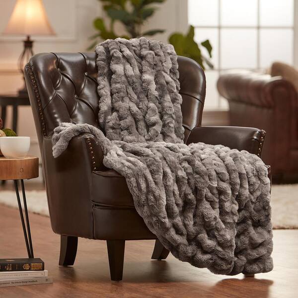 Rushed Dark Gray Faux Fur Reversible Minky Throw Blanket, 108 x 86 in. - King