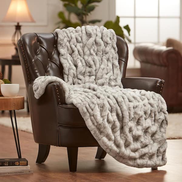 Rushed Marble Faux Fur Reversible Minky Throw Blanket, 50 x 65 in.