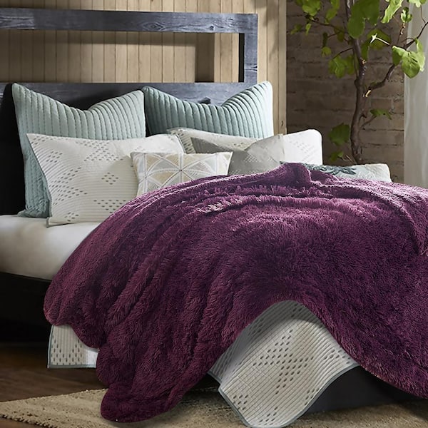 Solid Aubergine Shaggy Faux Long Fur Polyester Throw Blanket - 60 in. x 70 in.