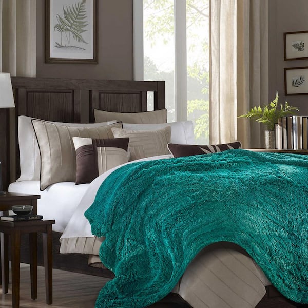 Solid Teal Shaggy Faux Long Fur Polyester Throw Blanket - 50 in. x 65 in.
