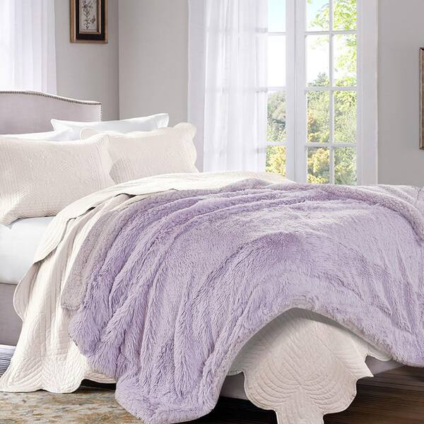 Solid Tint Shaggy Faux Long Fur Polyester Throw Blanket-92 in. x 85 in., Queen Size