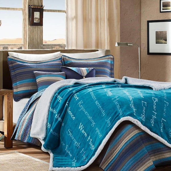 Sympathy Teal Love Support Comfort Faux Fur Polyester Reversible Sherpa Gift Throw Blanket, Twin